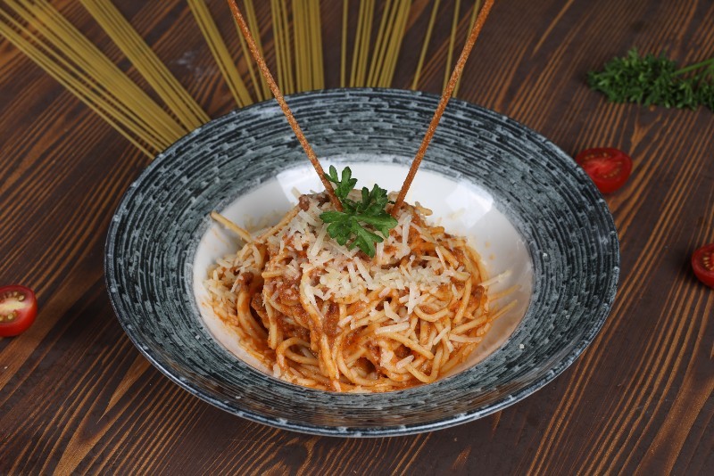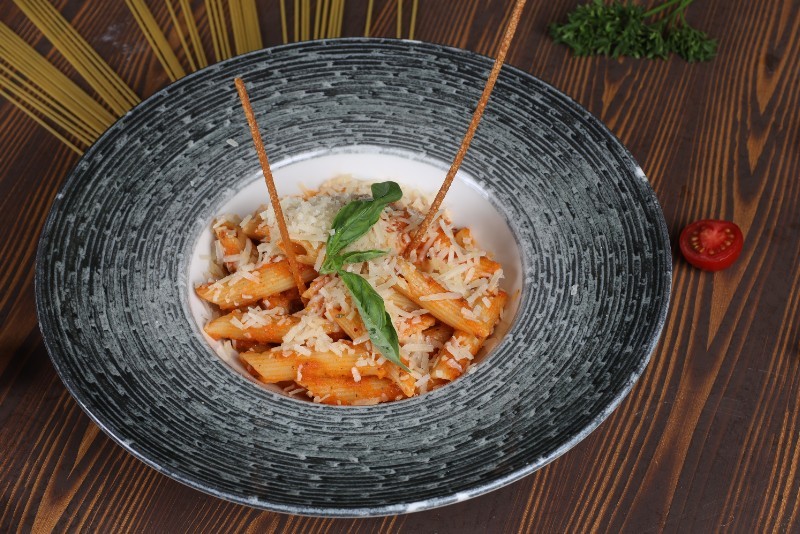 Domates sos pesto sos sarımsak kıyma parmesan peyniri ile