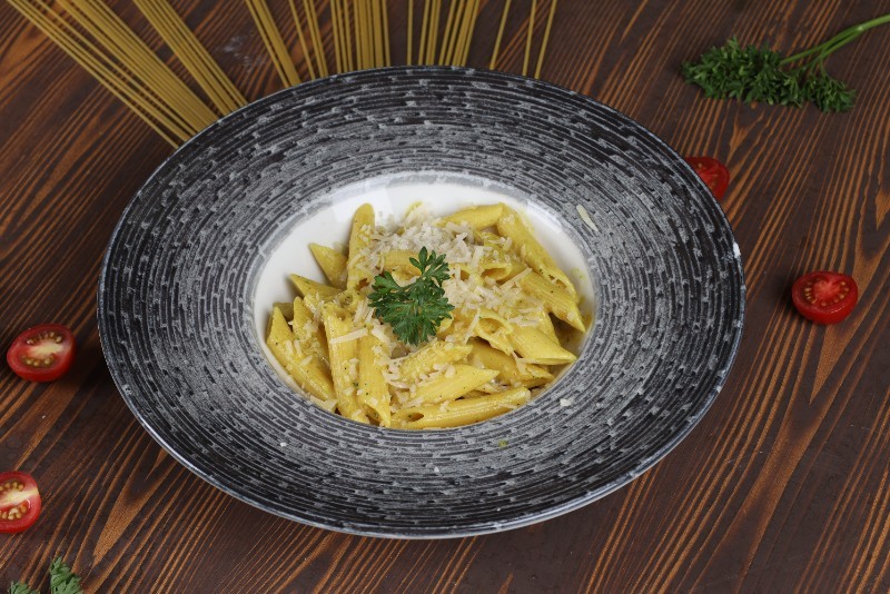 Krema köri sos pesto sos sarımsak parmesan peyniri ile