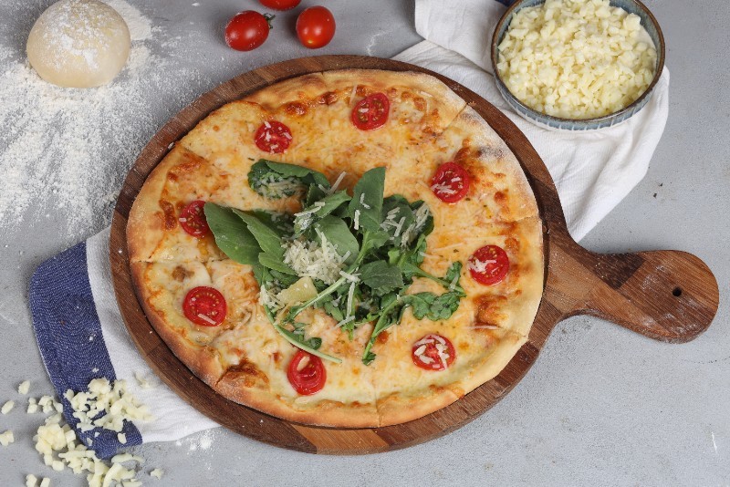 Mozerella peyniri parmesan domates roka ile servis edilir