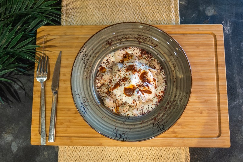 Krema köri sos pesto sos sarımsak parmesan peyniri ile